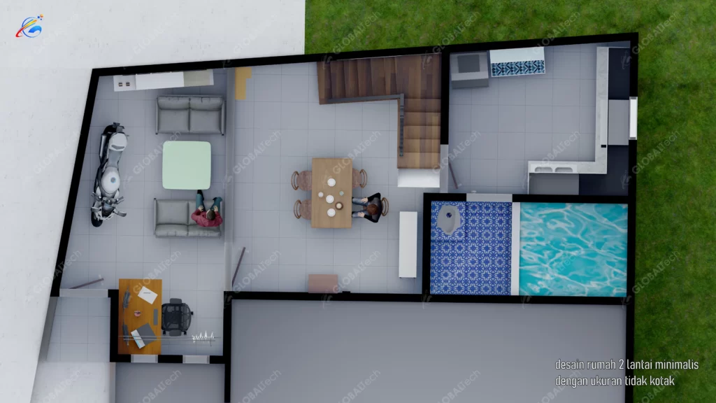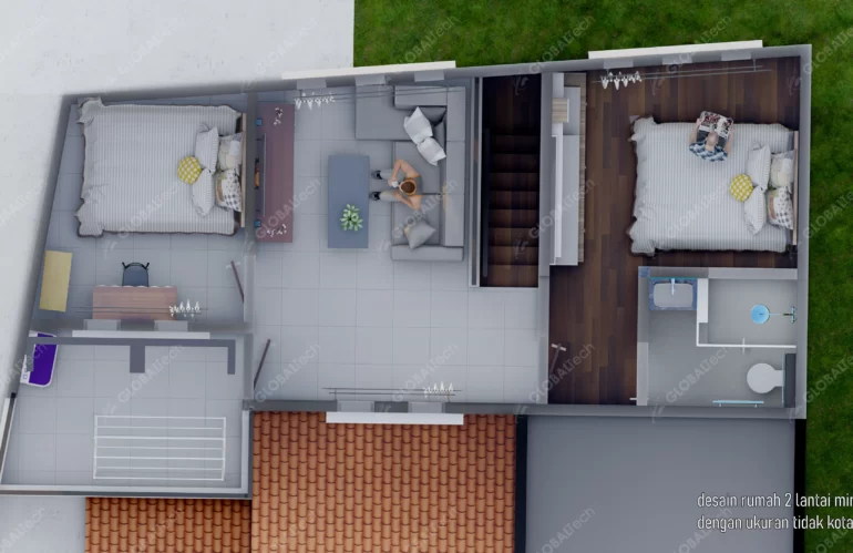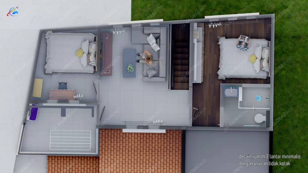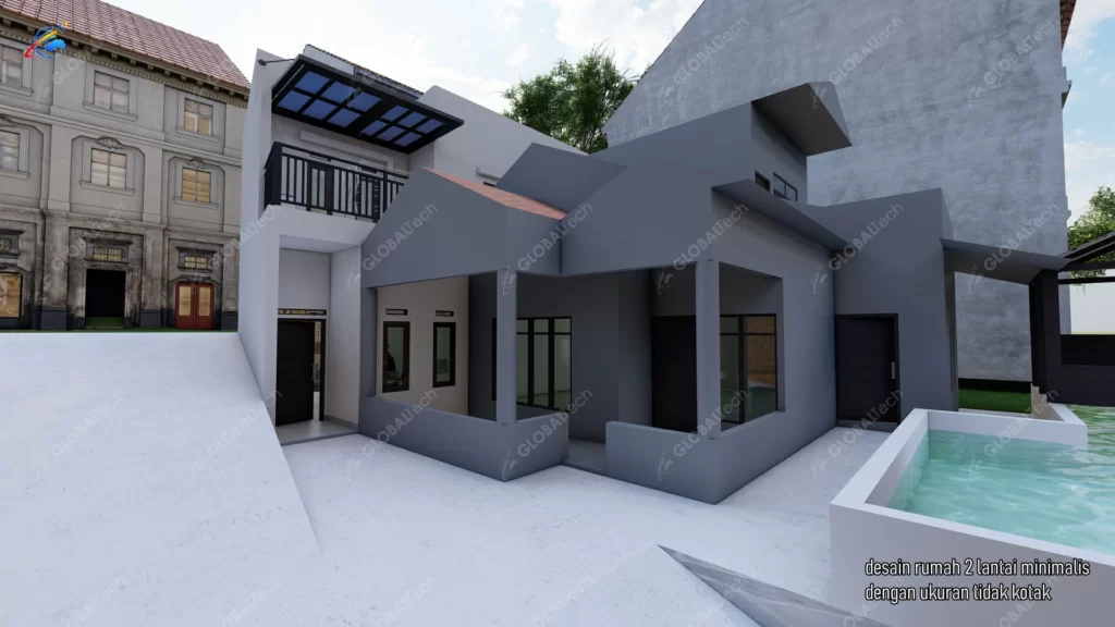 DESAIN RUMAH 2 LANTAI DENGAN MEMAXSIMALKAN LAHAN SEMPIT TIDAK BERATURAN